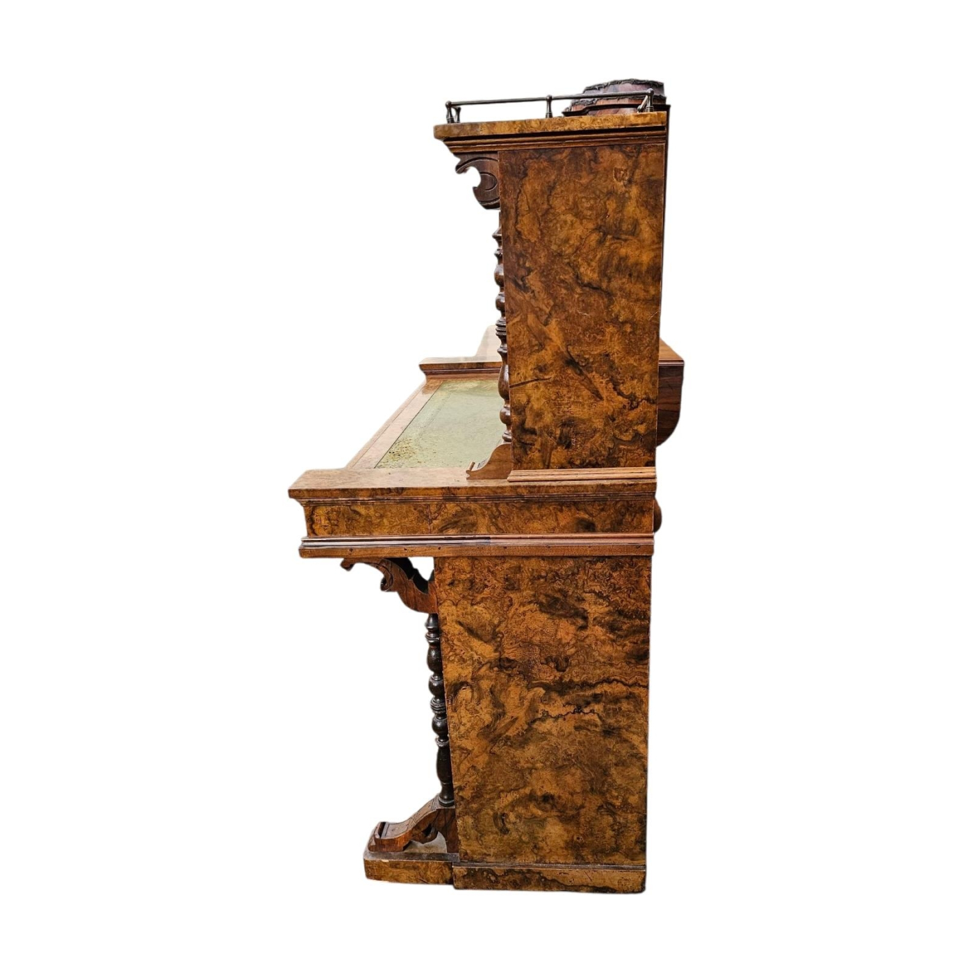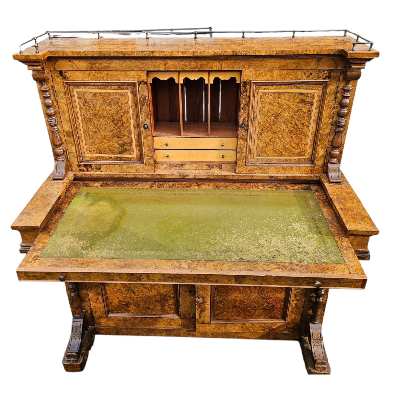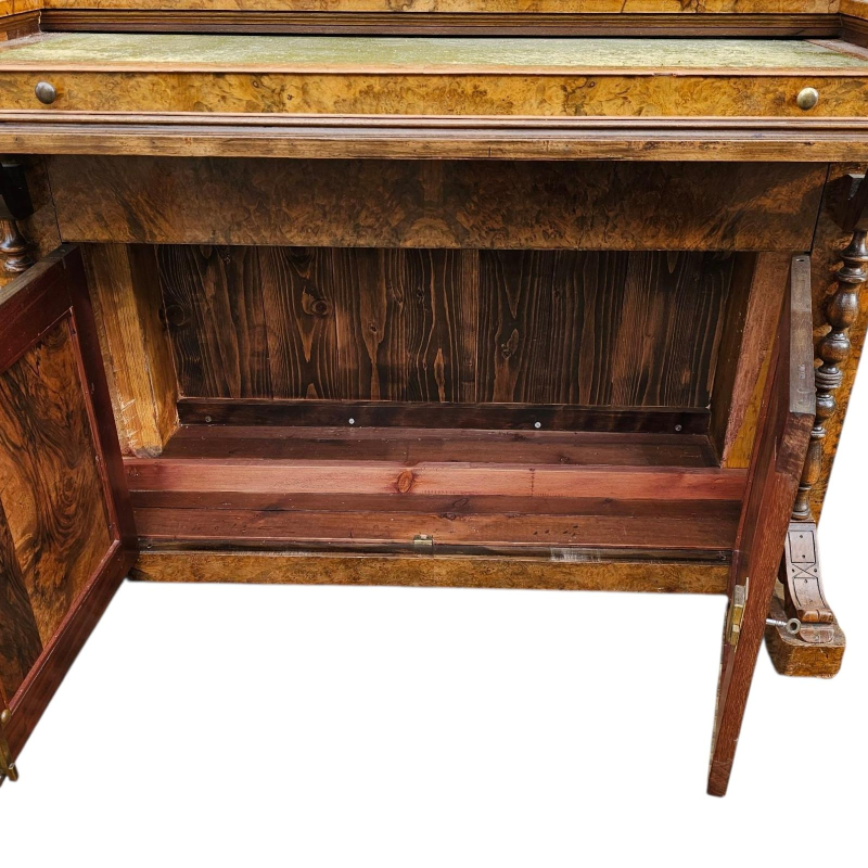 A VICTORIAN BURR WALNUT PIANO FRONTED WRITING CABINET