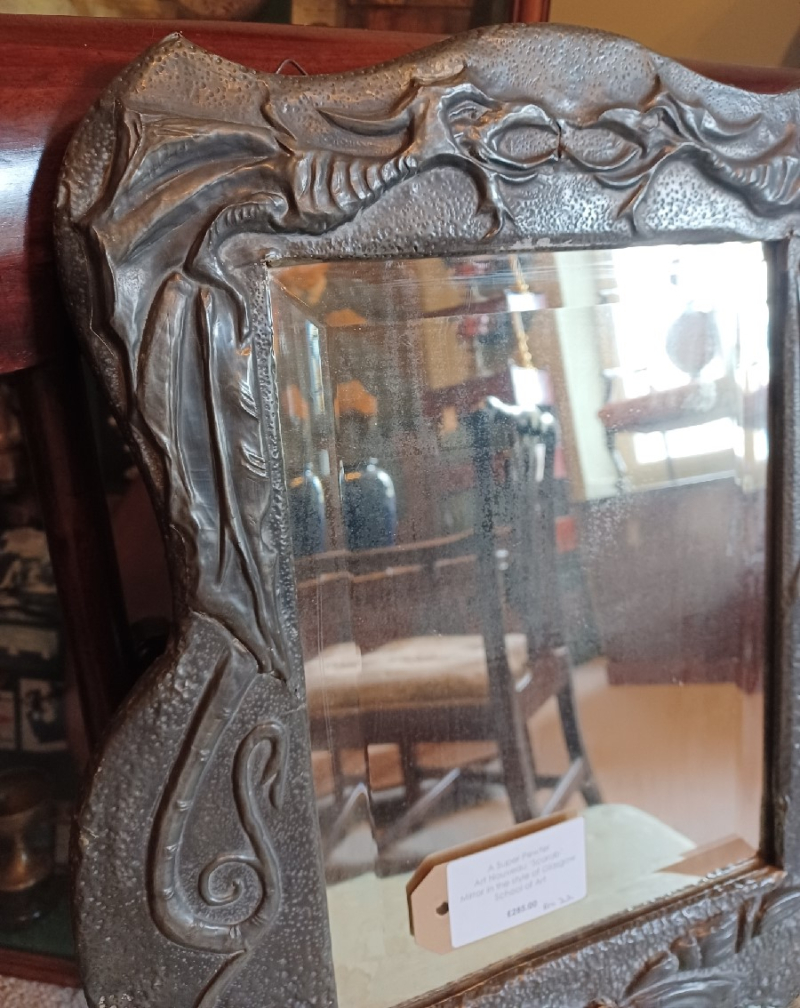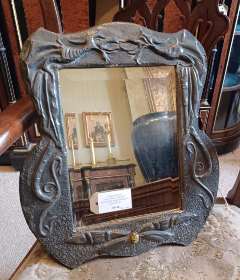 Art Nouveau 'Scarab' pewter mirror