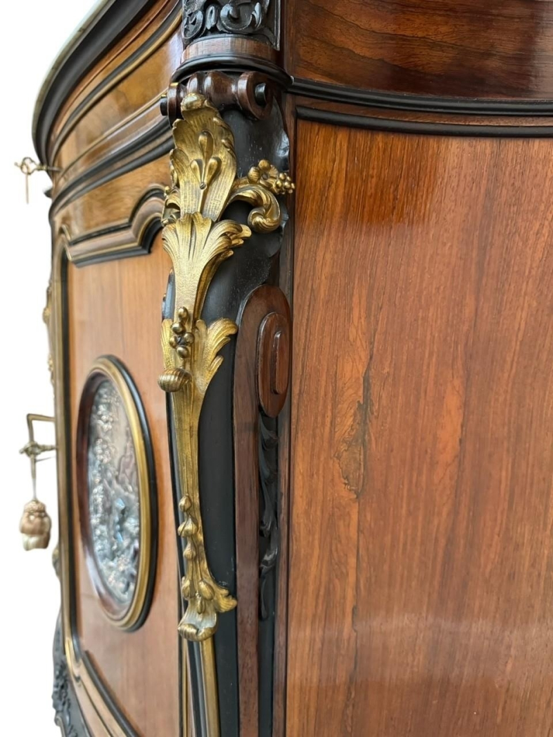 CHRISTOFLE, GROHÉ FRÈRES AND EUGÈNE GUIGNARD, A FINE AND RARE PAIR OF 19TH CENTURY FRENCH EXHIBITION QUALITY CARVED ROSEWOOD AND GILT BRONZE MOUNTED CABINETS