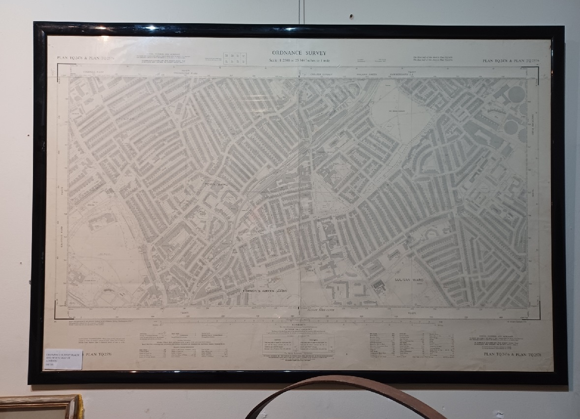 Framed Black and White OS Map of London