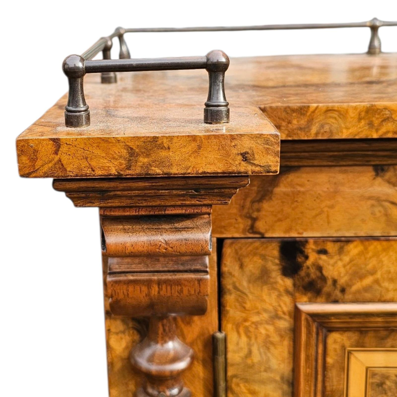 A VICTORIAN BURR WALNUT PIANO FRONTED WRITING CABINET