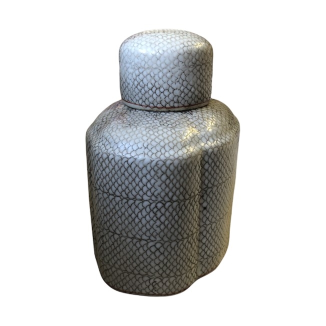 An 18th Century Style Chinese Porcelain Tea Caddy ( The body decorated in a faux shagreen )