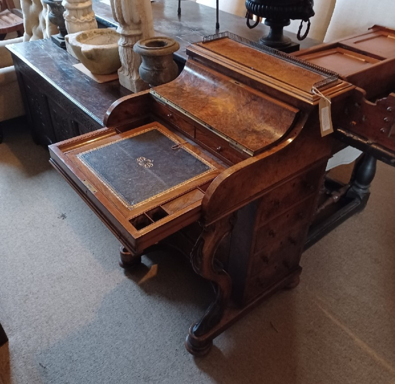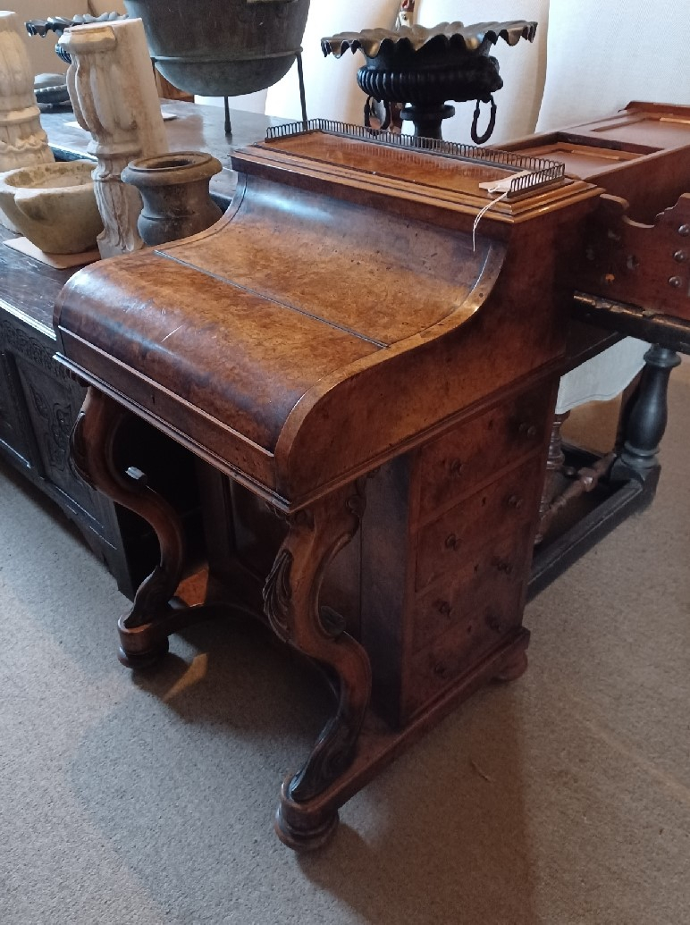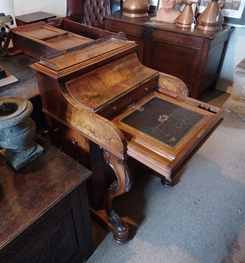 Victorian burr walnut pop up piani top Davenport writing desk.