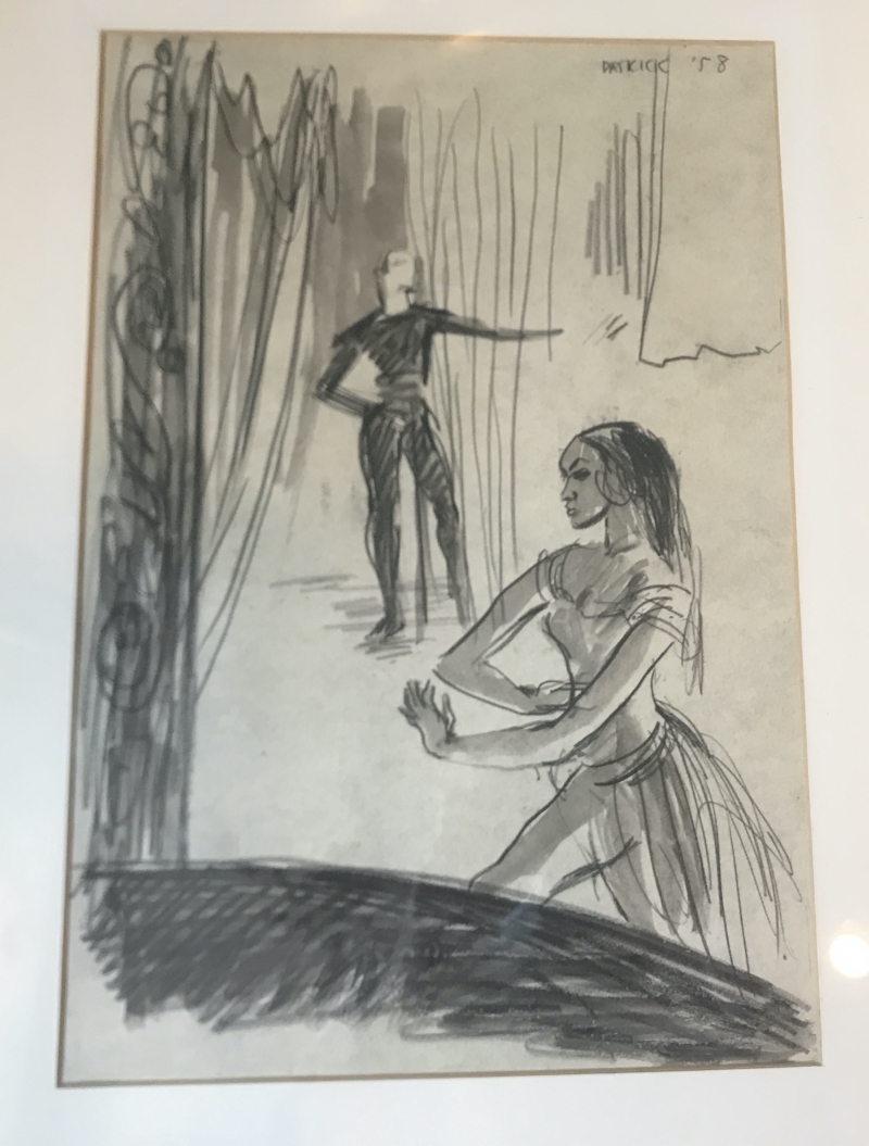 A black and white chilk with wash pen and ink by Cordelia Patrik titled "La Belle Dame Sans Merci"