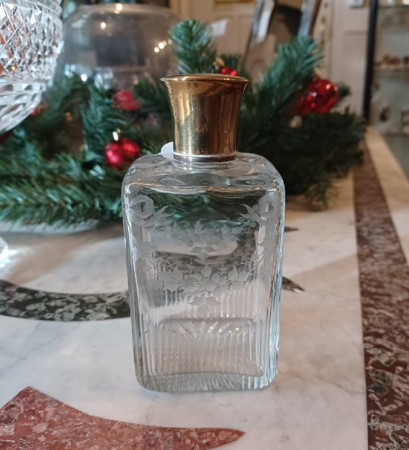 Cut and Engraved Glass Cologne Bottle