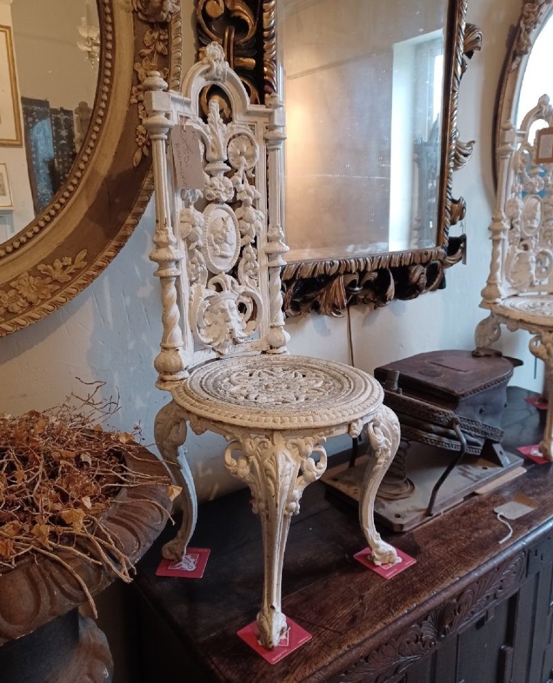 Pair of Victorian Heavy Cast Iron garden chairs.