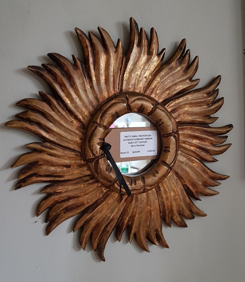Pretty Small Proporation Giltwood Sunburst Mirror Early 20th C, 36cm diamiter
